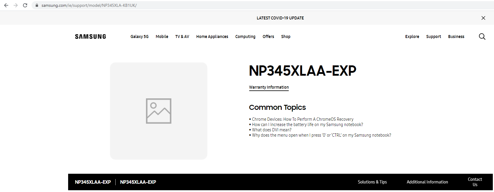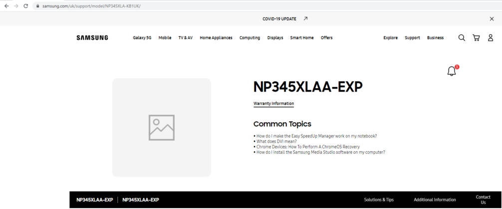 Last week, we spotted the Galaxy Book Go, bearing the model number NP345XLA, on the Wi-Fi Alliance and FCC certification websites. Today, we have come across support pages for a device with model number NP345XLAA-EXP on Samsung’s official website for the UK and Ireland. Considering the similarities with the model number of the Galaxy Book Go that we spotted on Wi-Fi Alliance, the NP345XLAA-EXP could be one of the variants of the laptop with different RAM/storage/color options or made for a particular region. Unfortunately, the support pages of the Galaxy Book Go don’t reveal any specifications about the device.
