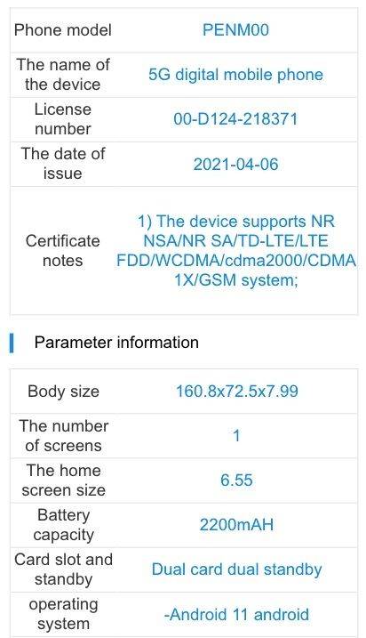 According to previous reports, the model number of the Reno 6 Pro is PEPM00 and that of the Reno 6 Pro+ is PENM00. Today, the two models were spotted on the TENAA certification platform by MySmartPrice, which reveals the Reno 6 Pro and the Reno 6 Pro+ specifications and live images.