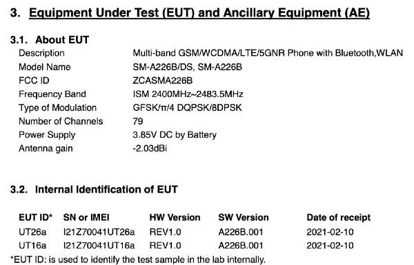 Samsung Galaxy A22 5G launch seems to be around the corner as the phone has been bagging all the required certifications. The handset had recently appeared on Google Play Console, Wi-Fi Alliance, Bluetooth SIG, and TUV Rheinland certifications. Now, the Samsung Galaxy A22 5G has been spotted on the FCC certification with the model number SM-A226B, revealing some key hardware details. The listing shows the phone will have a 5,000mAh battery (4,900mAh typical) and 15W fast-charging support. Connectivity features could include dual-band Wi-Fi, 5G connectivity, and a dual-SIM option. However, it will miss out on NFC.