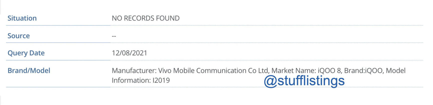 The IMEI listing confirms the iQOO 8 marketing name with the model number I2019 and it will come with 4G LTE. The Pro variant will come with a 2K E5 AMOLED LTPO 10bit panel with a 120Hz refresh rate that will dynamically adjust between 1Hz and 120Hz depending on the content on the screen. iQOO 8 Pro is confirmed to be powered by the Qualcomm Snapdragon 888 Plus SoC and supports 120W fast charging. While the standard iQOO 8 may come with the Snapdragon 870 chipset, which is the same processor powering the OnePlus 9R.