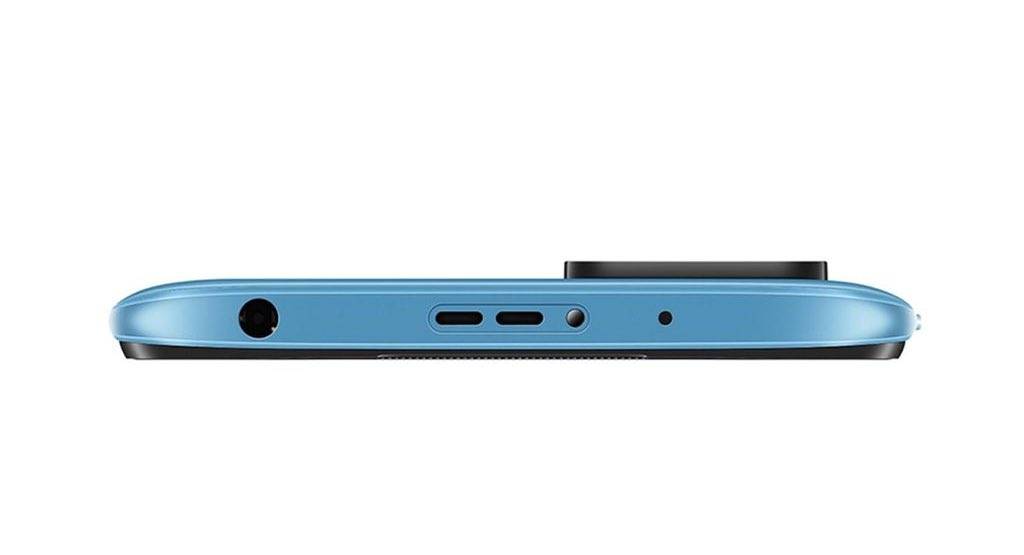 The Redmi 10 features a center-aligned punch-hole camera. The glossy rear panel has a gradient colour and a rectangular camera module that houses four camera sensors and an LED flash. The top of the frame has a 3.5mm headphone jack and what seems to be speaker grilles.