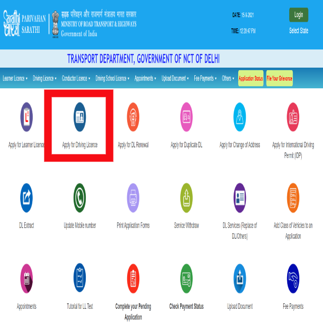 After you have applied for a driving licence online in Delhi, you need to go to the selected center to take the driving test on the requisite date. Once passed, you will get service delivery through speed post or electronic mode (an SMS link to download the PDF file on mobile sent to citizen/DigiLocker/m-Parivahan app).