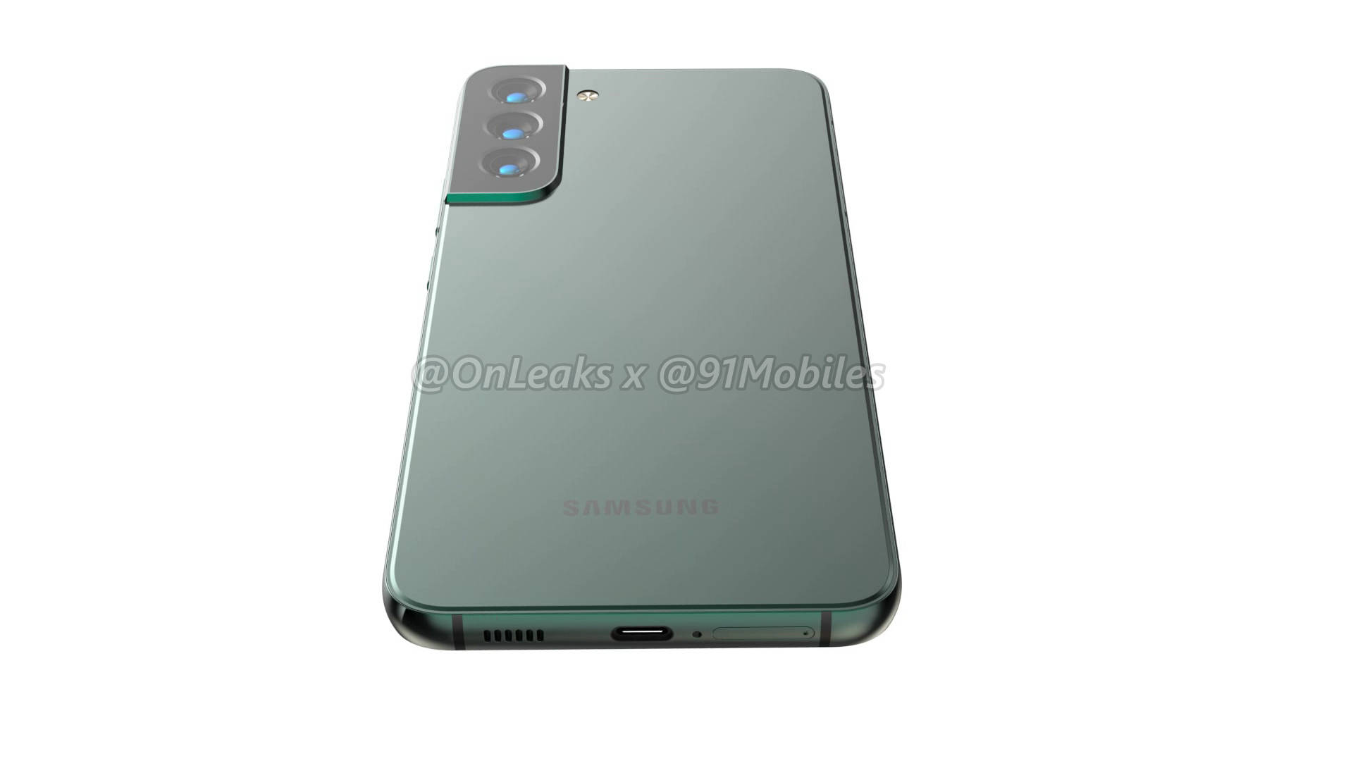 The renders show the Galaxy S22+ in an olive green colour, but it’s unclear at the moment whether this will be an official colour option. We see the usual set of buttons and ports around the frame – the volume and power keys on the right side, and the Type-C port and SIM tray on the bottom. There’s no headphone jack here, in case you hoped to see one.