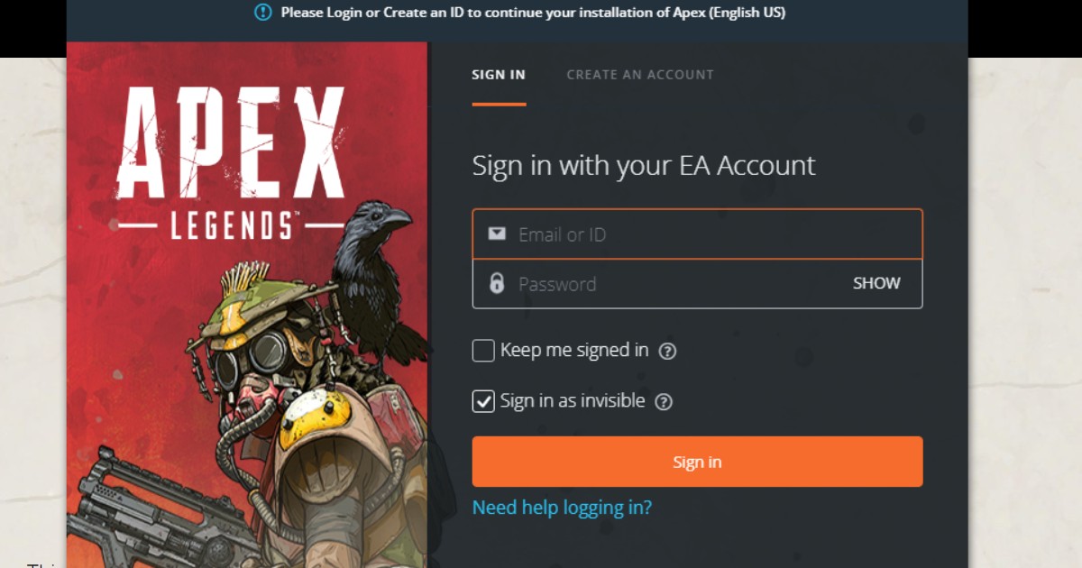- Sign in using your EA account or create a new one.