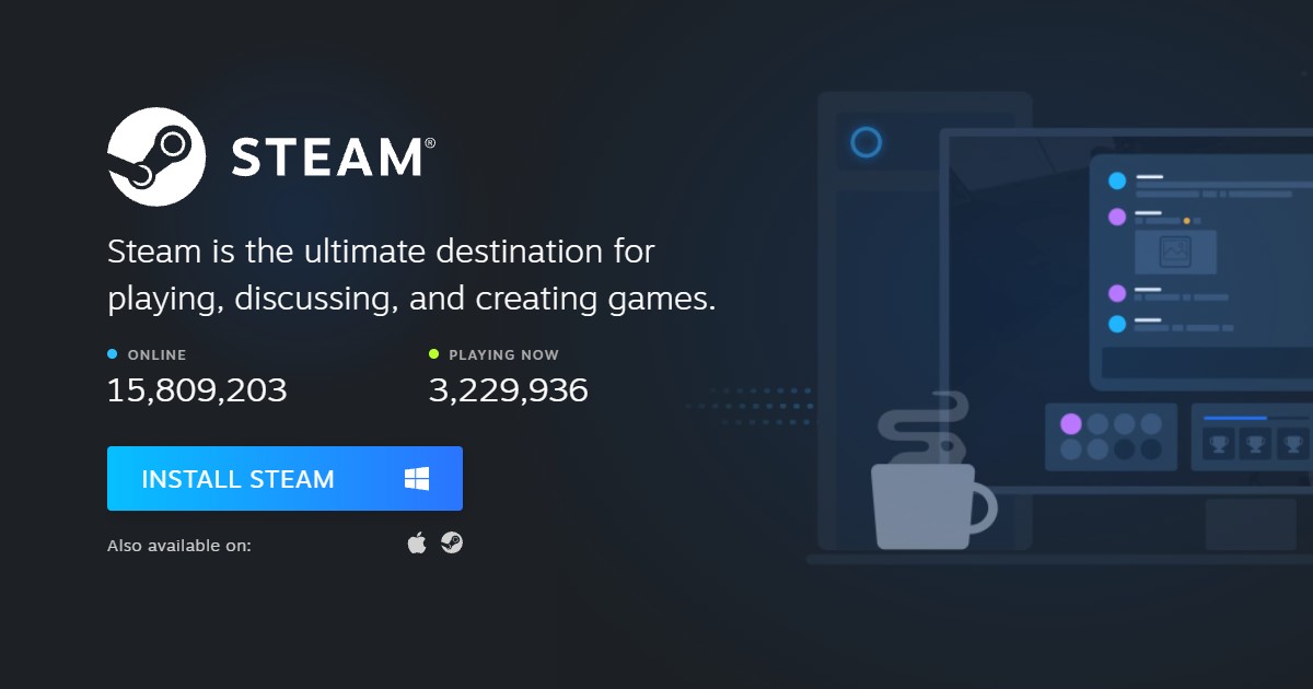 - Download and install the Steam app for your PC or laptop using this website.
