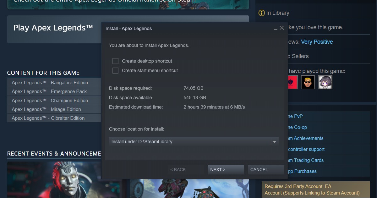- After picking the download location, click next to begin downloading Apex Legends.