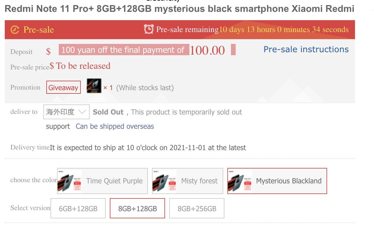 Both devices have now been listed on the Chinese e-commerce website JD.com. As seen in the pictures above, the Redmi Note 11 Pro will come in three memory configurations – 6GB/128GB, 8GB/128GB, and 8GB/256GB. Plus, there will be four colour options to choose from – Mysterious Black, Misty Forest, Quite Purple, and “Shallow Meng Xinghe” (machine translated from Chinese). The Redmi Note 11 Pro+ will also feature the same memory variants and three colour variants – Mysterious Black, Misty Forest, and Quite Purple.