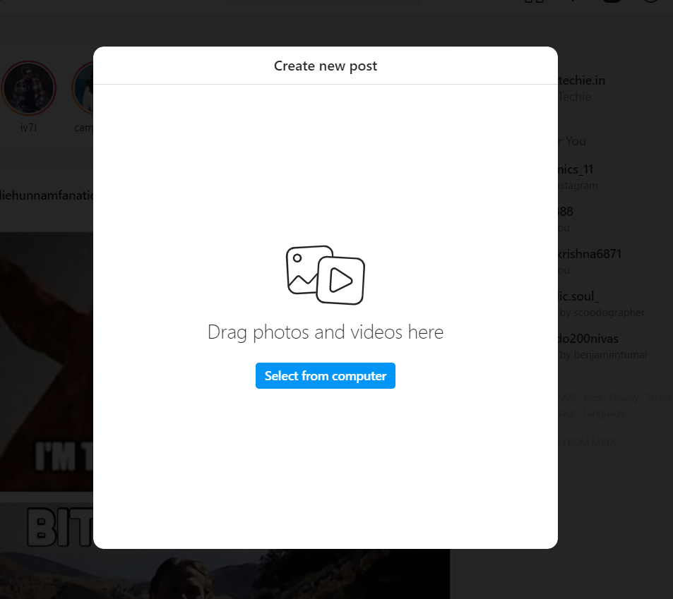 How to post images and videos on Instagram from laptop/ PC