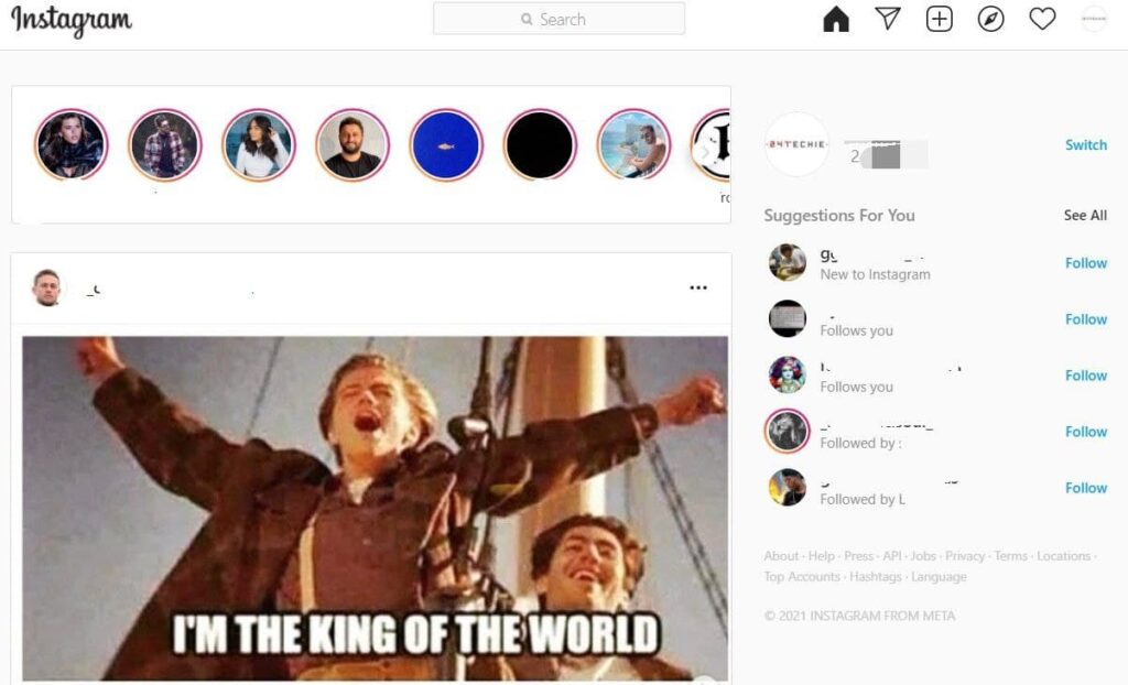- Once the website is open, proceed to log in by entering your credentials. Upon login, you can see your entire timeline with posts from the people you follow. In the top right corner, you will notice some icons.
