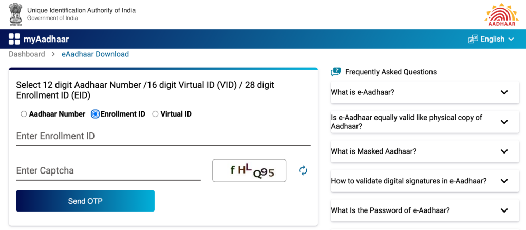 - Now, you’ll get three options to download your electronic copy – Aadhaar Number, Enrolment ID (EID), or Virtual ID (VID).