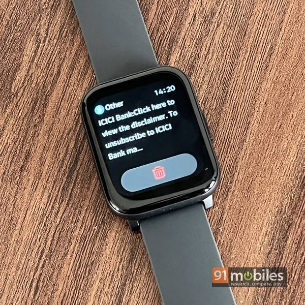 - The wearable offers the usual smart features, including weather, alarm, stopwatch, timer, music control, remote camera shutter, phone finder, etc. As can be expected, it mirrors notifications from a paired smartphone too… though there’s no way to interact with them.