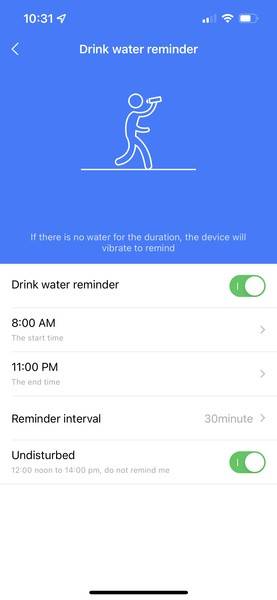 Under drink water reminder: “If there is no water for the duration, the device will vibrate to remind”