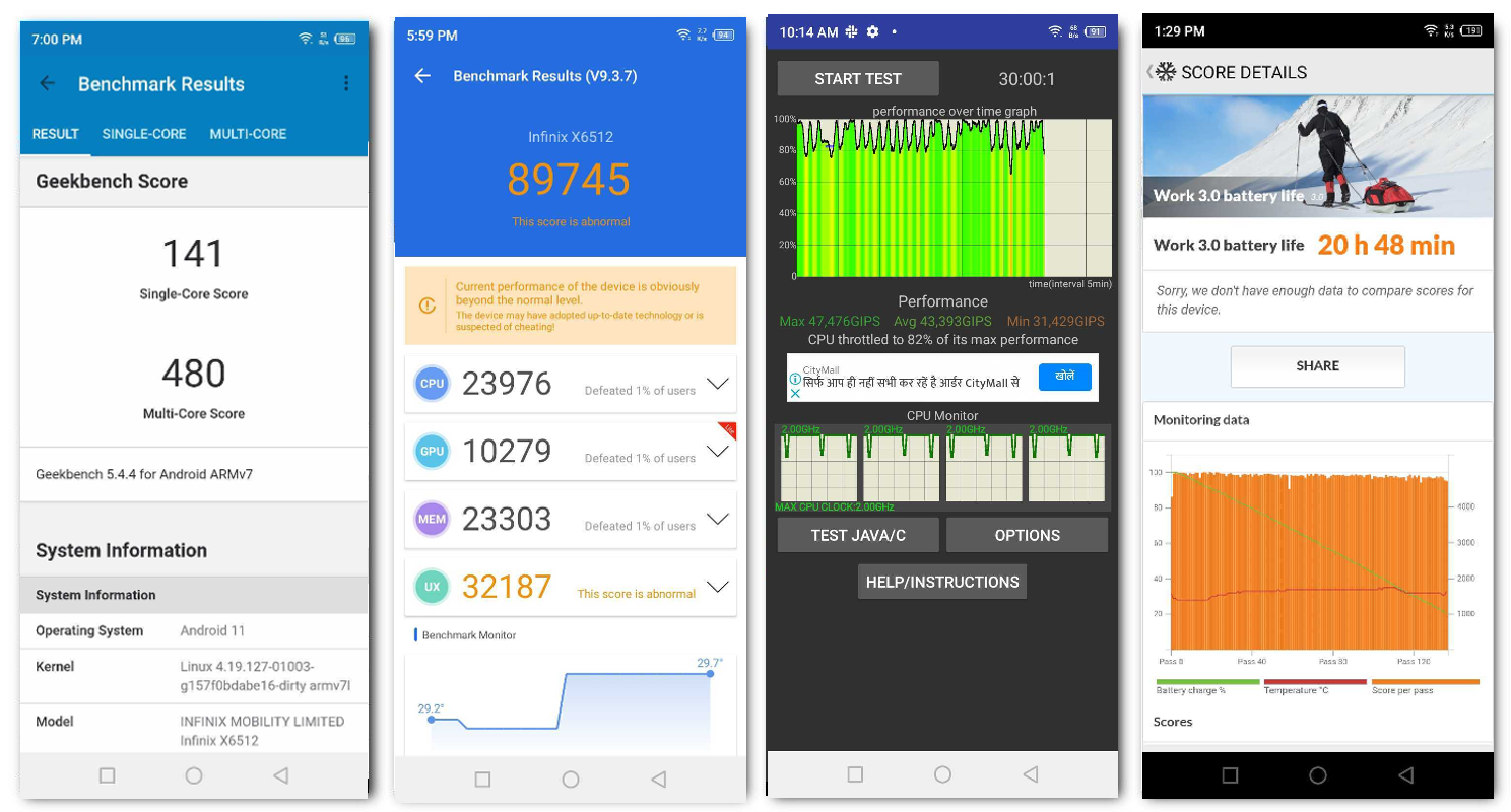- The Infinix smartphone comes with an impressive battery life that will surely last you for days. The handset is driven by a 5,000mAh battery, which netted a stellar score of 20 hours and 48 minutes in the PC Mark test. Considering the phone is only used for basic stuff and some navigation, the handset should last at least a day and then some on a single charge. As impressive as it may sound, you should know that the Infinix Smart 6 HD comes with a 10W charger, which takes around 2.5 hours for a full charge.