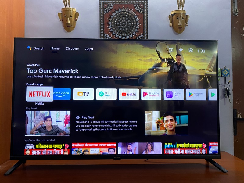 MediaTek’s quad-core SoC that consists of Cortex A55 CPUs and a Mali G31 MP2 GPU handles the performance. Apart from that you also get 1GB of RAM and 8GB of internal storage. To cut a long story short, I was not overly impressed with the Smart TV X’s processing prowess. The UI felt a bit slightly sluggish and can freeze up for a couple of seconds randomly while switching between apps. However, the apps themselves ran smoothly and showed no signs of buffering. Android TV 11 runs on the device, providing access to the Play Store and your favourite OTT apps. As can be expected, there’s an integrated Chromecast function for effortless casting to the screen.