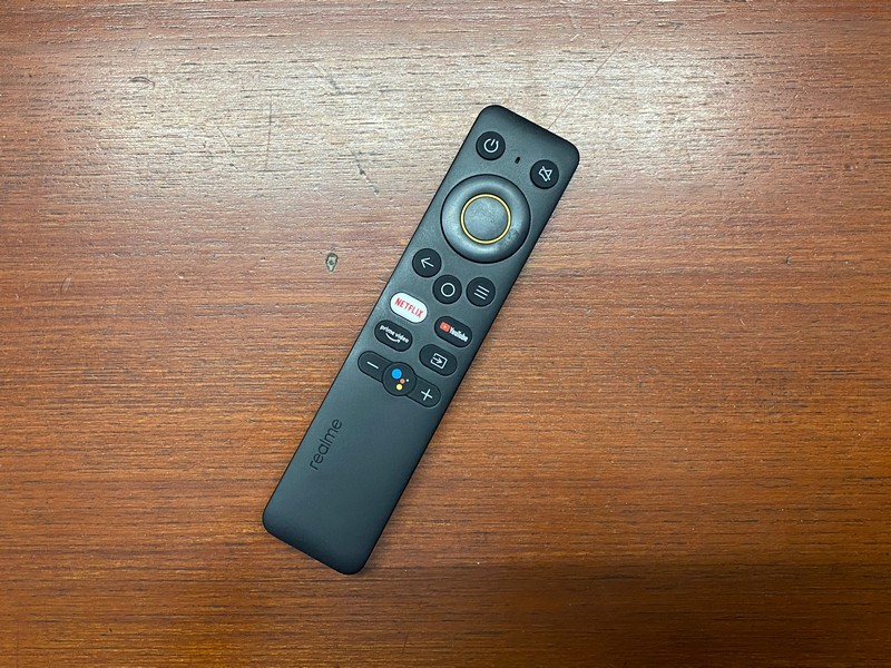 As for the remote, it has the same design and button layout as previous Realme TV remotes. It is sleek, made of a composite polymer, and has a sort of matte finish across the board. You do get direct access to Netflix, YouTube, and Prime Video from the remote’s dedicated buttons. Apart from that, there is a dedicated Google Assistant button present for accessing the UI through voice commands. The remote pairs effectively with the Smart TV X.