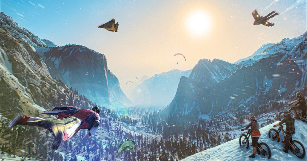 Riders Republic serves as a spiritual successor to 2016’s Steep. The game comes with a massive and beautiful open world that is filled with several activities. The open world is a combination of seven national parks in the US that are seamlessly stitched together. The adventure sports title features multiple bikes, snowboards, skis, and wingsuits to participate in Career mode or multiplayer events. Up to 64 players can battle simultaneously in the massive multiplayer environment.